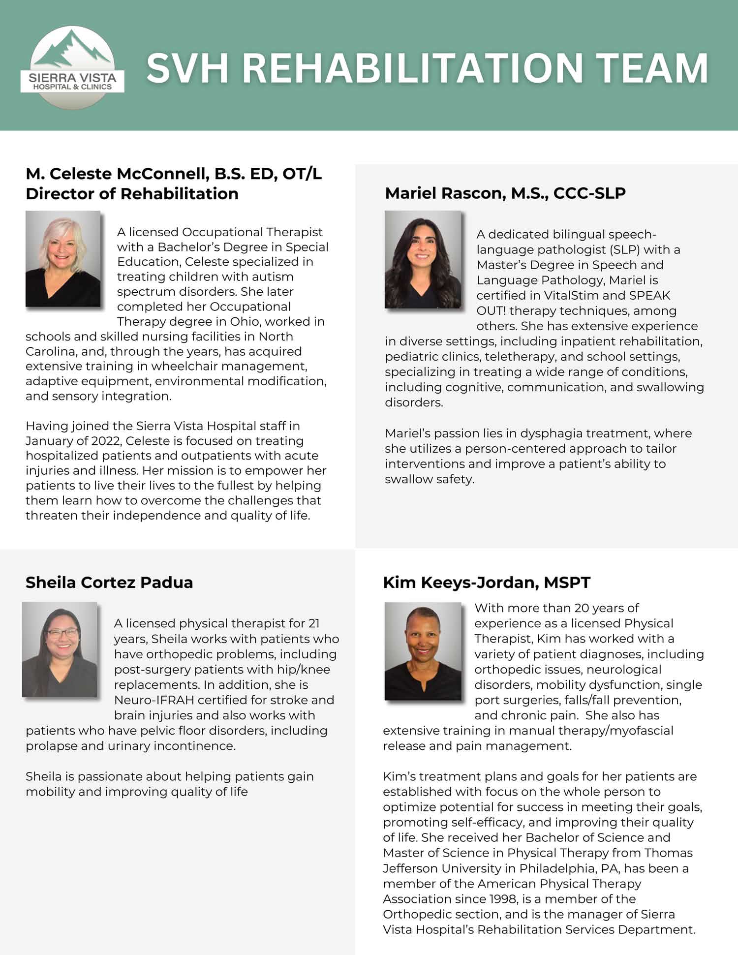 - serves as a professional, technical extension of SVH medical services to Sierra County and surrounding areas.